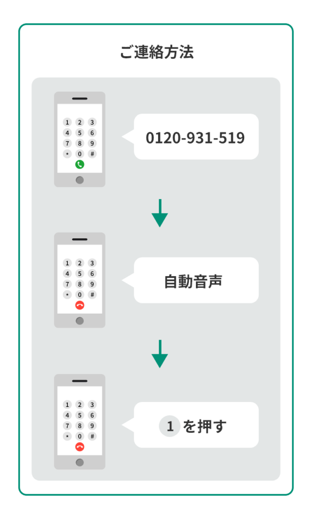2025年12月1日(月)以降、新電話番号(0120-931-519)にお電話いただくと、自動音声のアナウンスが流れます。